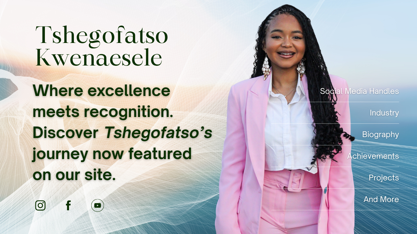Currently, as a semi-finalist for Teen Universe South Africa, she is leveraging the pageant platform to amplify her message. Tshegofatso Kwenaesele embodies a new generation of leadership; one where global ambition and local compassion are seamlessly woven together to create a lasting legacy.